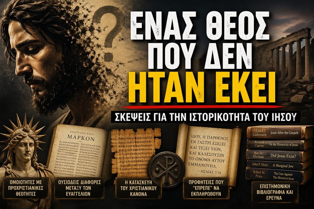 Το μέλος της ομάδας μας και δημιουργός του youtube καναλιού, RealityvsMyth Gr, Τάσος Καρανίκας, σήκωσε πριν μερικά 24ωρα ένα άκρως ενδιαφέρον νέο βίντεο, διάρκειας 42 λεπτών, με τίτλο “Ένας θεός που δεν ήταν εκεί – Τελικές σκέψεις για το ζήτημα της ιστορικότητας του Ιησού“.
